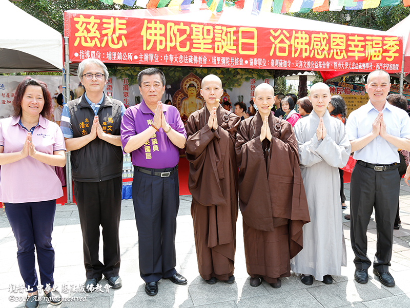 中華大悲法藏佛教會 埔里分會 彌陀共修會慶讚慈悲教主 本師釋迦牟尼佛的聖誕日,在仁愛公園舉辦「浴佛感恩幸福季」。早上活動尚未開始,就有很多居民前來等候,對壇城莊嚴的佛陀法像,虔誠合十問訊祝禱。
